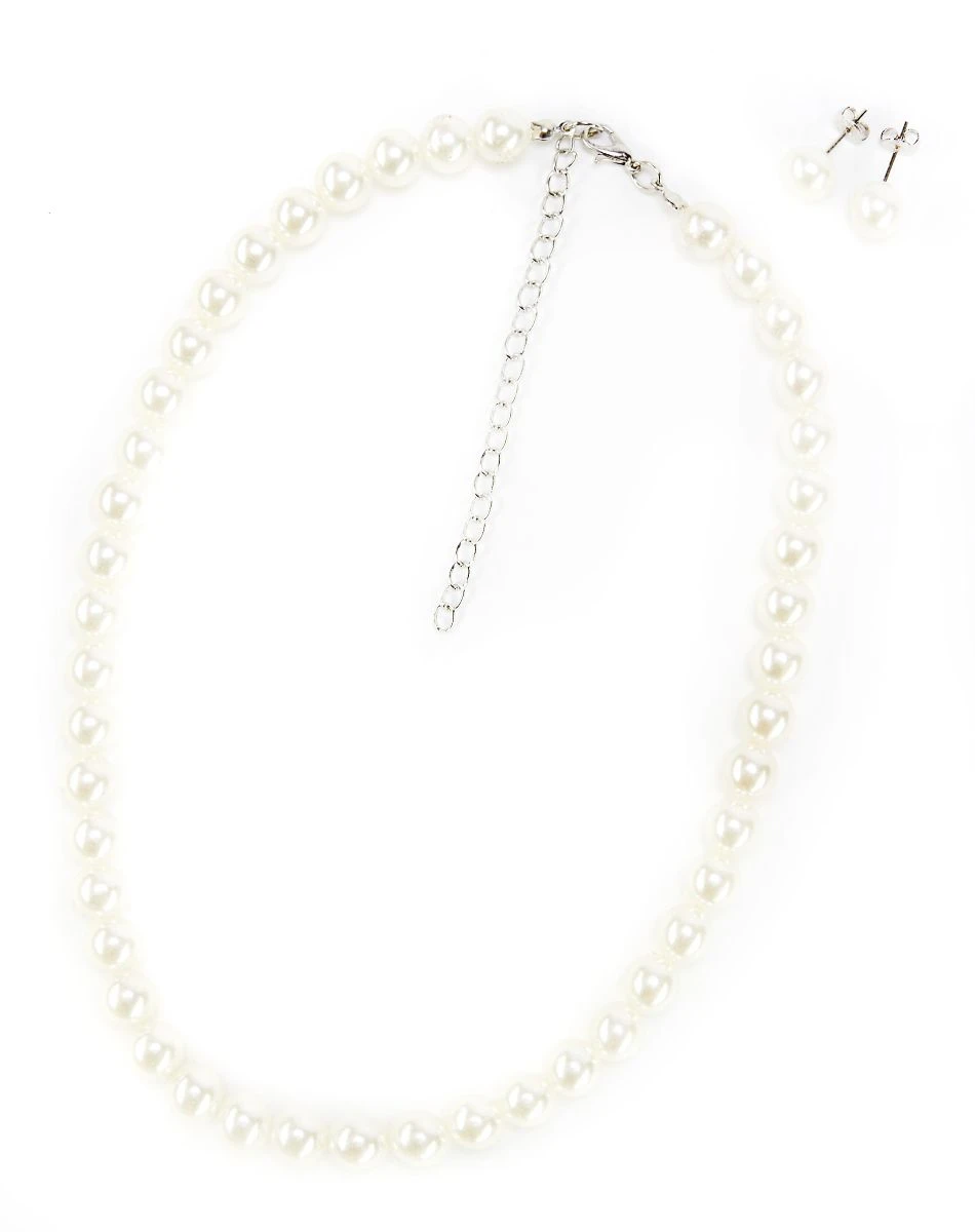 You don’t like the term “trophy wife”, but you can still look fabulous when you wear this Housewife Jewelry Set! Look like an upscale housewife when you adorn yourself with this white, pearl-like necklace and matching earrings.